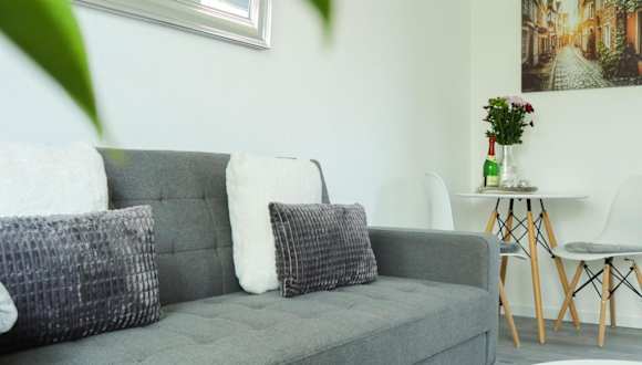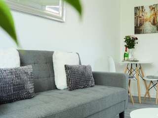 Die Ferienwohnung besteht aus einem Schlafzimmer, einem Wohnzimmer, einer voll ausgestatteten Küche mit Kühlschrank und Kaffeemaschine sowie einem Badezimmer mit Dusche und Haartrockner. Handtücher und Bettwäsche werden bereitgestellt.