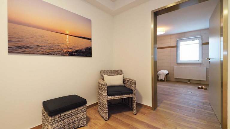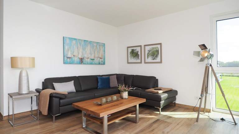Das Appartement "Aquamarin" mit Penthouseflair - Oase am Haff bietet ein modernes Ambiente und Annehmlichkeiten wie eine Sauna. Die Unterkunft ist für Gäste, die eine ruhige und entspannende Umgebung suchen, ideal. Der Check-in erfolgt ab 16:00 Uhr, Check-out ist bis 10:00 Uhr möglich. Eine Voranmeldung für die Ankunft ist erforderlich, und eine Zahlung per Überweisung muss im Voraus erfolgen. Haustiere sind erlaubt, für deren Haltung können zusätzliche Gebühren anfallen.