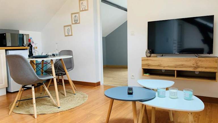 Das Appartement au style scandinave - pour deux personnes proche de Chartres ist eine gemütliche Unterkunft in Luisant, ideal für Paare, die einen entspannten Aufenthalt in der Nähe von Chartres suchen. Mit kostenfreiem WLAN und einer gut ausgestatteten Küche bietet das Apartment alles, was Sie für einen angenehmen Aufenthalt benötigen. Die Lage ist günstig, in der Nähe von Bahnhöfen und der Kathedrale von Chartres.