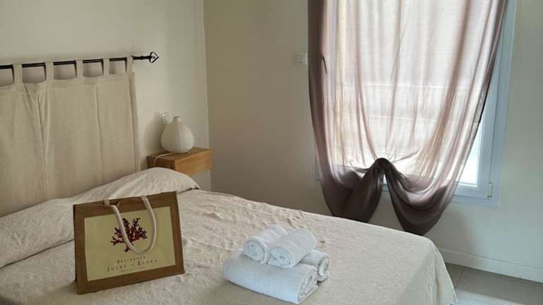 Die klimatisierte Ferienwohnung beinhaltet ein Schlafzimmer, ein Wohnzimmer, eine voll ausgestattete Küche mit Kühlschrank und Kaffeemaschine sowie ein Badezimmer mit Dusche. Handtücher und Bettwäsche können gegen Aufpreis bereitgestellt werden.