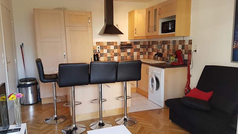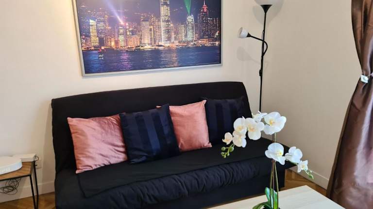 Das Appartement verfügt über ein Wohnzimmer mit einem Sitzbereich und einem Essbereich, ein Schlafzimmer und ein Badezimmer mit Bidet und Badewanne. Handtücher und Bettwäsche werden bereitgestellt. Zusätzlich ist ein Blu-ray-Player vorhanden.