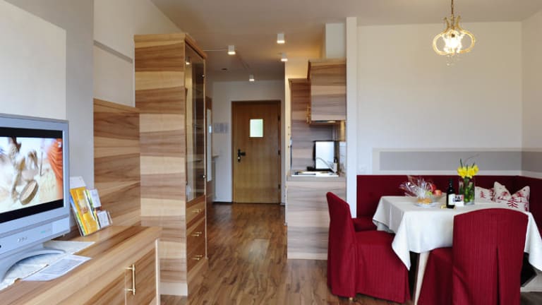 Bei Ankunft erwarten Sie Obst und Naschereien in Ihrem Appartement, das Wochenprogramm mit Tipps und Infos, eine vollständig eingerichtete Küche mit Heißluftmikrowelle, Espresso-, Kaffee- und Geschirrspülmaschine, sowie ein Bügeleisen, Bügelbrett und eine gemeinsame Waschmaschine, Handtücher und Bettwäsche. Der Wäschewechsel erfolgt wöchentlich, kann gegen Aufpreis auch täglich durchgeführt werden. Auf Wunsch liefern wir Ihnen täglich frische Brötchen. Bachmair-Gäste können alle Einrichtungen im Stammhaus Hotel Hohenwart (10 Gehminuten entfernt) benutzen.