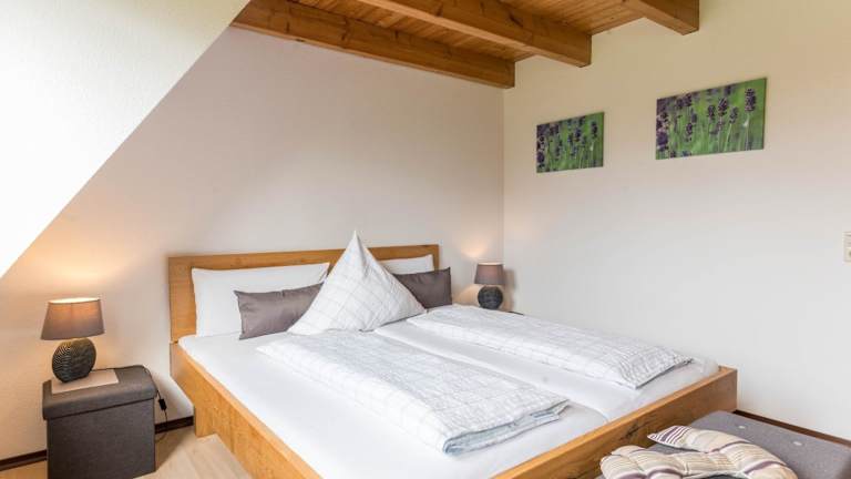 Die Ferienwohnung verfügt über zwei Schlafzimmer und ein Badezimmer. Zur Ausstattung gehören Bettwäsche, Handtücher, ein TV mit Satellitenkanälen und eine voll ausgestattete Küche. Zudem gibt es eine Terrasse mit Seeblick, die den Gästen zusätzliche Erholungsmöglichkeiten bietet.