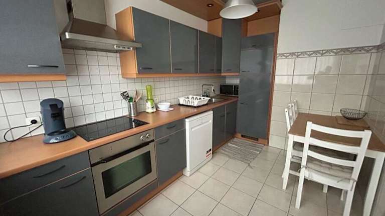 Die Ferienwohnung verfügt über ein Schlafzimmer, ein Wohnzimmer und eine voll ausgestattete Küche, die mit einem Kühlschrank und einem Geschirrspüler ausgestattet ist. Handtücher und Bettwäsche werden bereitgestellt.