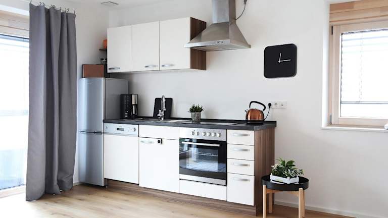 Das Appartement verfügt über 1 Schlafzimmer und ein Wohnzimmer sowie eine gut ausgestattete Küche mit Kühlschrank und Geschirrspüler. Zur weiteren Ausstattung gehören ein TV, ein Badezimmer mit Dusche, Handtücher und Bettwäsche. Die Terrasse bietet einen schönen Stadtblick.