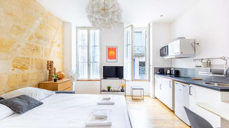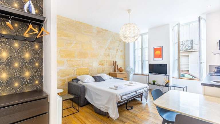 Das Belle Etoile Sweet Home Bordeaux liegt in einer zentralen Lage in Bordeaux. Die Basilika Saint-Michel ist nur 900 m entfernt und die Steinbrücke erreichen Sie nach 1,1 km. Die Unterkunft ist gut an das öffentliche Verkehrsnetz angebunden, da sich die Straßenbahnhaltestelle Tauzia nur 50 m entfernt befindet. Die Große Glocke von Bordeaux ist ebenfalls nur 1,2 km entfernt. Der Bahnhof Bordeaux-Saint-Jean ist bequem zu Fuß in 400 m erreichbar. Der nächstgelegene internationale Flughafen Bordeaux ist 11 km entfernt.
