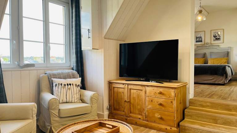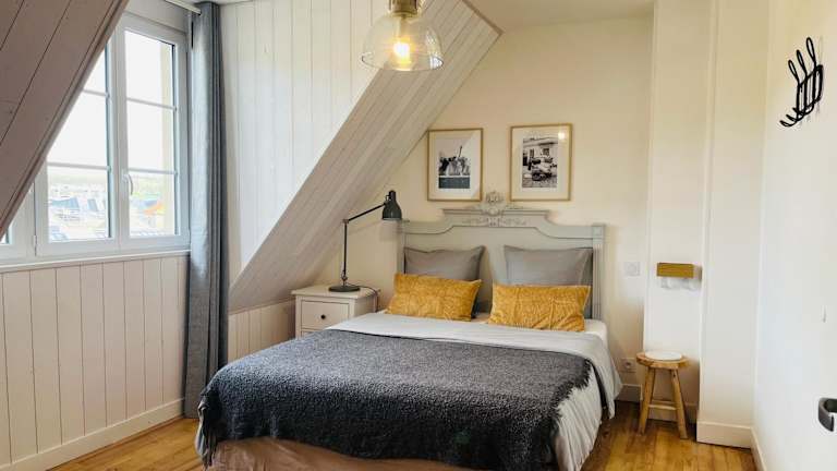 Das Appartement cosy bord de mer befindet sich in Port-en-Bessin-Huppain, nur 300 Meter vom Strand Crique Vauban entfernt. In der Umgebung sind Sehenswürdigkeiten wie die Batterie Longues-sur-Mer (6,5 km) und das Overlord Museum (8,2 km) zu finden. Weitere kulturelle Attraktionen sind die Kathedrale Notre-Dame de Bayeux, die 9 km entfernt liegt, und das Museum Baron Gerard, das sich in 10 km Entfernung befindet. Der nächstgelegene Flughafen ist der Flughafen Caen-Carpiquet, der 36 km von der Unterkunft entfernt ist.
