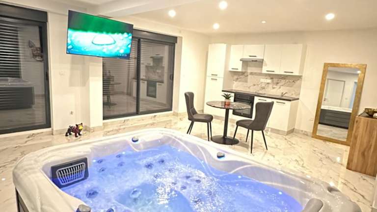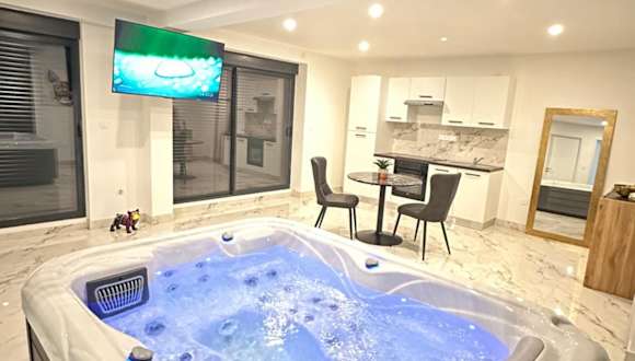 Appartement cosy jacuzzi spa 70M2 bietet eine Ferienwohnung mit einer gemütlichen Atmosphäre, die mit modernen Annehmlichkeiten ausgestattet ist. Die Unterkunft überzeugt durch eine private Terrasse und kostenloses WLAN.