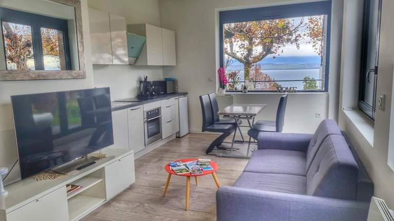 Die Unterkunft befindet sich in Thonon-Les-Bains, etwa 32 km von Jet d'Eau und 33 km vom Hauptbahnhof Genf entfernt. Die Umgebung bietet einen Blick auf den Lac Léman und ist in der Nähe des Evian Masters Golfclubs, der 12 km entfernt ist.
