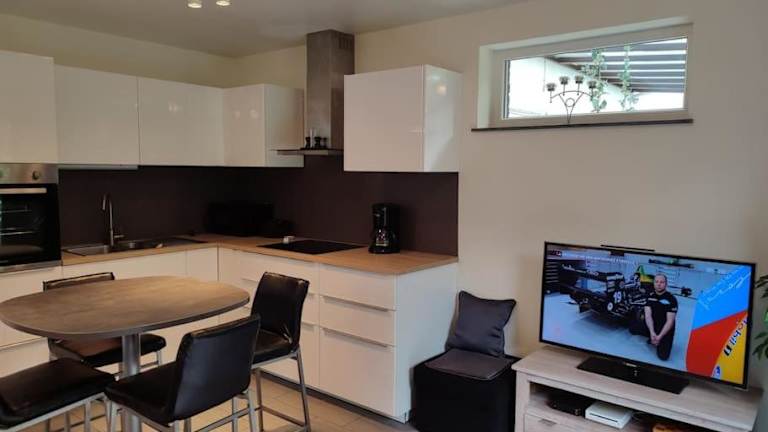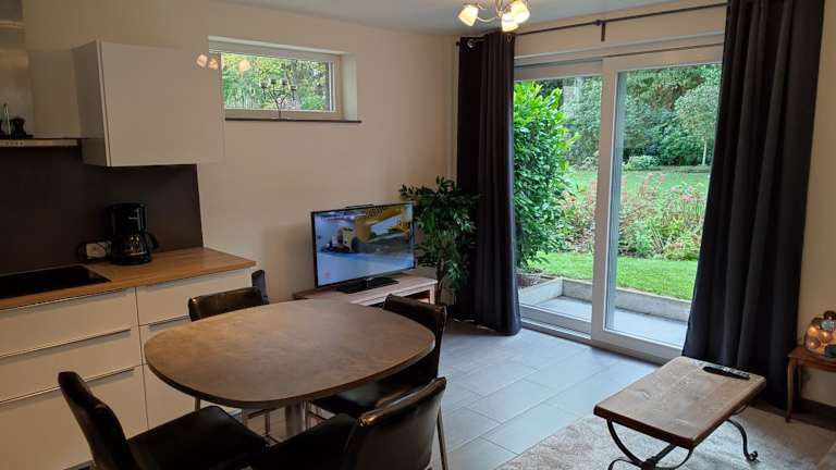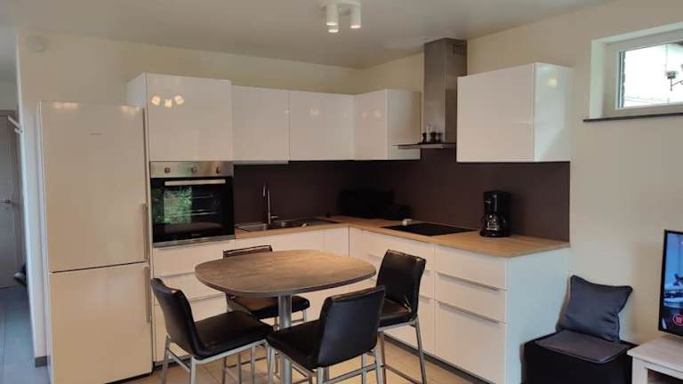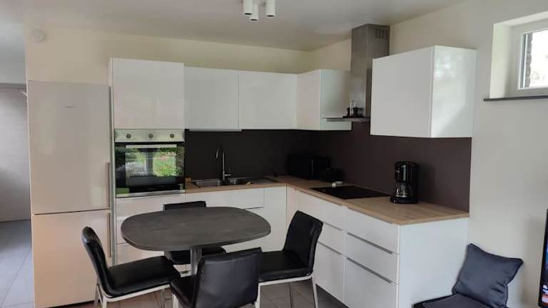 Das Apartment im Appartement dans un superbe quartier résidentiel verfügt über ein Schlafzimmer, ein Wohnzimmer und eine voll ausgestattete Küche. Die Terrasse bietet einen herrlichen Blick auf den Garten und lädt zum Entspannen ein. Für Ihren Komfort sind Handtücher und Bettwäsche vorhanden. WLAN ist kostenlos verfügbar und Privatparkplätze stehen Ihnen ebenfalls zur Verfügung.