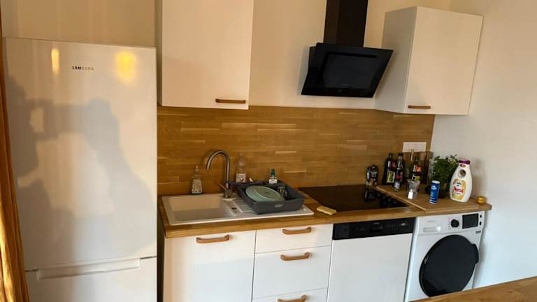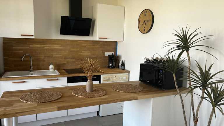 Die Ferienwohnung besteht aus einem Schlafzimmer, einem Wohnzimmer, einer voll ausgestatteten Küche mit Kühlschrank und Kaffeemaschine sowie einem Badezimmer mit Badewanne und Haartrockner. Handtücher und Bettwäsche können gegen Aufpreis bereitgestellt werden.