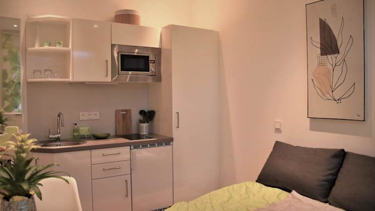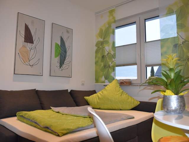 Die Ferienwohnung verfügt über 1 Schlafzimmer und 1 Badezimmer. Zur Ausstattung gehören Bettwäsche, Handtücher, ein Flachbild-TV mit Satellitenkanälen sowie eine voll ausgestattete Küchenzeile. Die Terrasse bietet einen Blick auf den Garten.