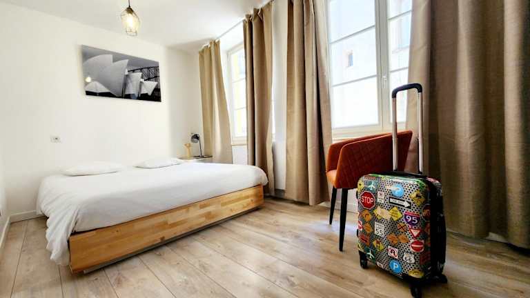 Das Appartement en centre piétonnier proche de la gare ist eine Ferienwohnung in einem Gebäude aus dem Jahr 1950. Die Unterkunft bietet eine Gemeinschaftslounge, kostenloses WLAN, eine 24-Stunden-Rezeption und einen Geldautomaten.