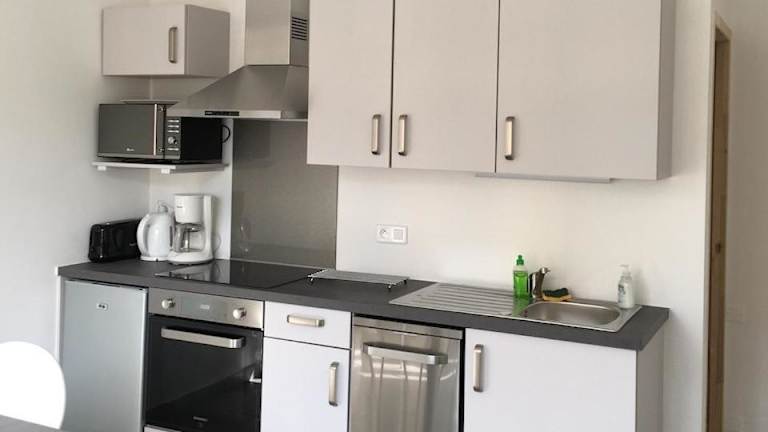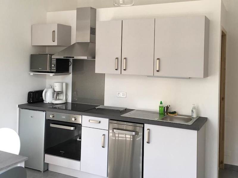 Die Ferienwohnung verfügt über ein Schlafzimmer mit Klimaanlage und eine voll ausgestattete Küche, einschließlich Kühlschrank. Handtücher und Bettwäsche werden zur Verfügung gestellt.