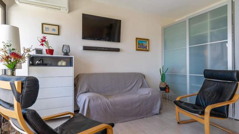 Die Ferienwohnung verfügt über ein Schlafzimmer, ein Wohnzimmer und eine voll ausgestattete Küche mit Kühlschrank und Kaffeemaschine. Das private Badezimmer beinhaltet eine Dusche sowie kostenlose Pflegeprodukte. Handtücher und Bettwäsche werden bereitgestellt, und die Unterkunft bietet einen Balkon mit Meerblick.