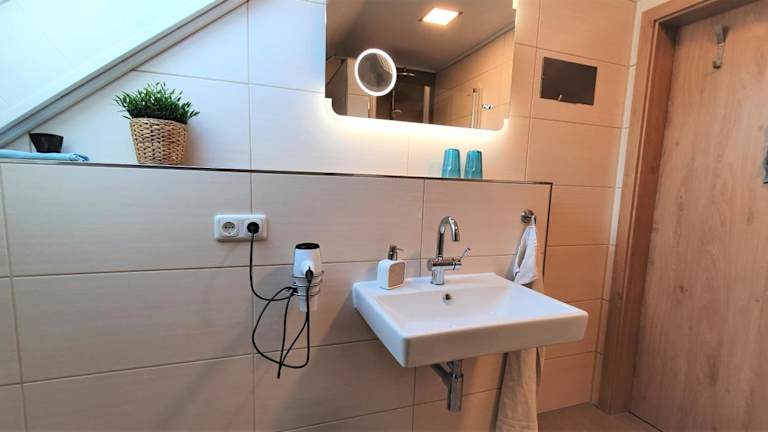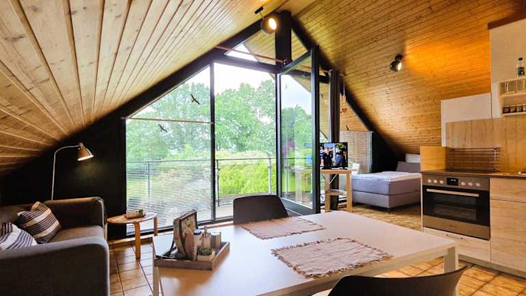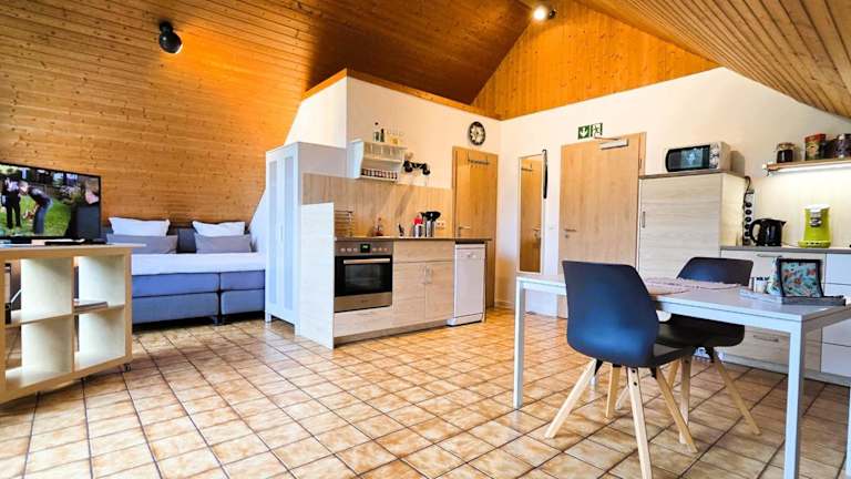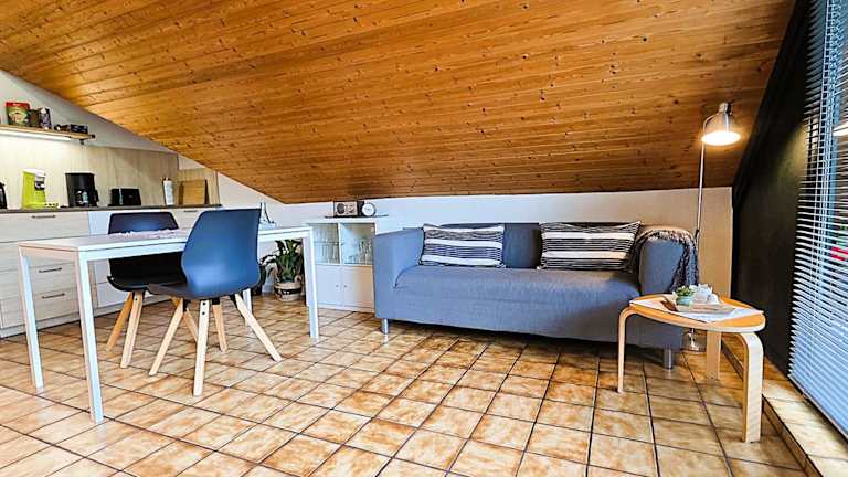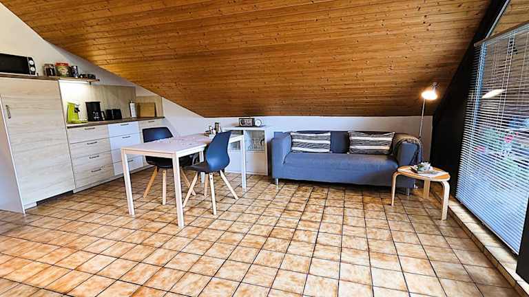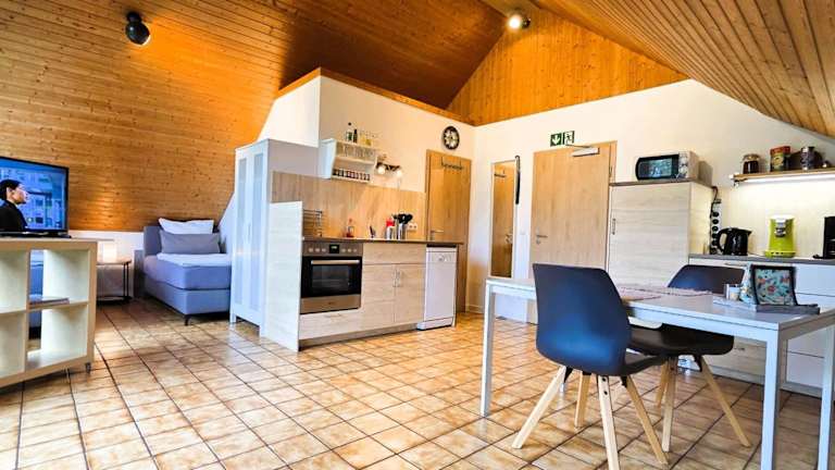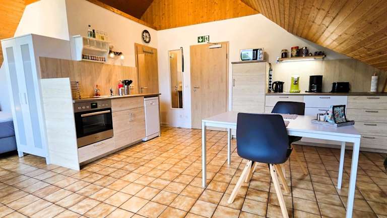 Die Ferienwohnung besteht aus 1 Schlafzimmer, einem Wohnzimmer sowie einer vollständig eingerichteten Küche mit Kühlschrank und Kaffeemaschine. Das Badezimmer verfügt über eine Dusche und einen Haartrockner. Handtücher und Bettwäsche werden bereitgestellt.