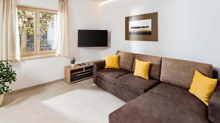 Das Appartement Irene umfasst ein Schlafzimmer sowie ein Wohnzimmer. Die voll ausgestattete Küche verfügt über einen Kühlschrank und eine Kaffeemaschine. Zusätzlich ist ein Badezimmer mit Bidet und Dusche vorhanden. Handtücher und Bettwäsche werden bereitgestellt. Die Unterkunft ist klimatisiert.