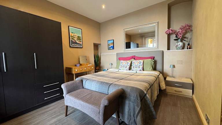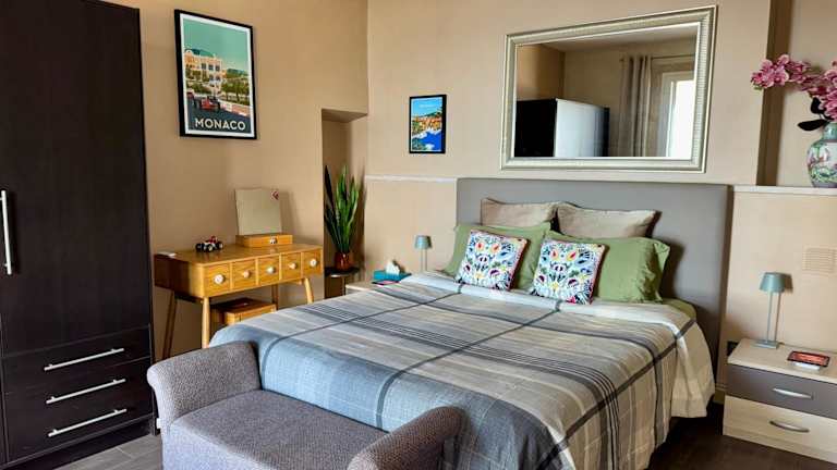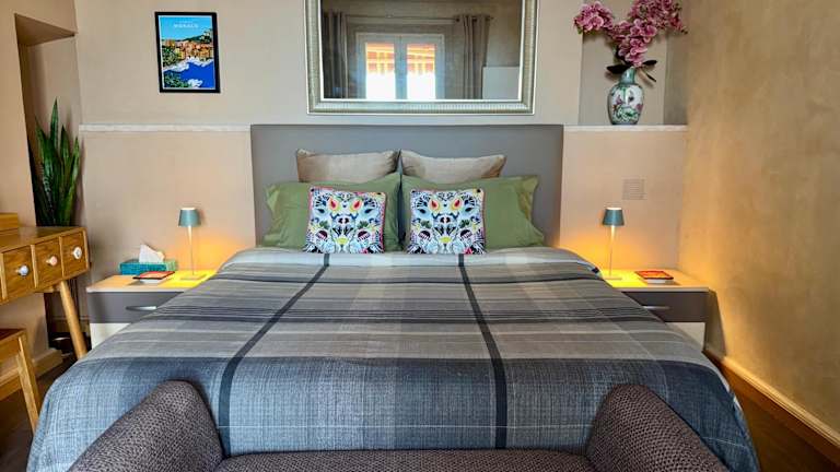 Die Ferienwohnung ist klimatisiert und bietet 1 Schlafzimmer, ein Wohnzimmer sowie eine voll ausgestattete Küche mit Kühlschrank und Kaffeemaschine. Des Weiteren stehen ein Badezimmer mit Dusche und Haartrockner zur Verfügung, sowie Handtücher und Bettwäsche.