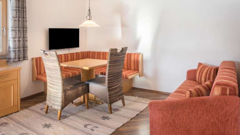 Die Ferienwohnung umfasst 2 Schlafzimmer, ein Wohnzimmer, einen TV sowie eine gut ausgestattete Küche mit Kühlschrank und Geschirrspüler. Das Badezimmer ist mit einer Badewanne ausgestattet. Handtücher und Bettwäsche werden zur Verfügung gestellt. Zudem ist ein Abstellraum für Skier vorhanden.