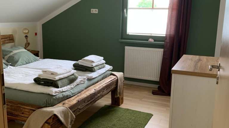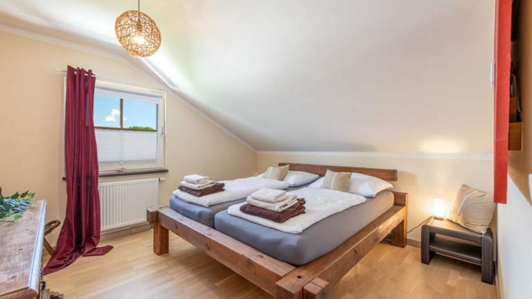 Die Ferienwohnung besteht aus 2 Schlafzimmern, einem Wohnzimmer und einer voll ausgestatteten Küchenzeile, die mit einem Kühlschrank und einer Kaffeemaschine ausgestattet ist. Zur Ausstattung gehört zudem ein Badezimmer mit einer Dusche und einem Haartrockner. Handtücher und Bettwäsche werden bereitgestellt.