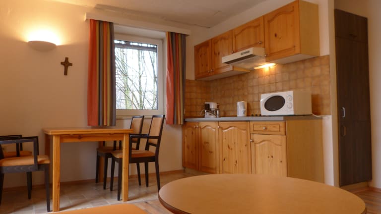 Die Zimmer im Appartementhaus Kolpinghaus sind gemütlich eingerichtet und bieten alles, was Sie für einen angenehmen Aufenthalt benötigen. Jedes Zimmer verfügt über ein Wohnzimmer, eine Küche und ein Badezimmer. Ein Balkon bietet zusätzlichen Platz für Entspannung und Erholung. Die Zimmer sind mit einem Doppelbett oder einem Sofabett ausgestattet. Auf Wunsch können auch separate Schlafzimmer gebucht werden. Kinderbetten sind vorhanden. Die Kochnische ist mit einer Mikrowelle und einer Tee-/Kaffeemaschine ausgestattet. Zur Unterhaltung stehen ein TV-Gerät mit Kabelempfang und ein Radio zur Verfügung. Die Badezimmer verfügen über eine Dusche.