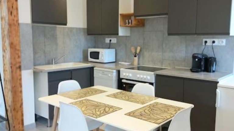 Die Ferienwohnung ist mit einer gut ausgestatteten Küche ausgestattet, die folgende Annehmlichkeiten umfasst: Kühlschrank und Geschirrspüler. Handtücher und Bettwäsche werden bereitgestellt.
