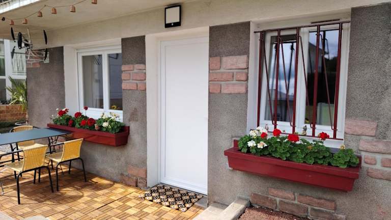 Appartement Les Géraniums ist eine Ferienwohnung, die Übernachtungsmöglichkeiten mit kostenlosem WLAN bereitstellt. Die Unterkunft verfügt über eine Terrasse und bietet Gartenblick sowie Zugang zu einem kostenlosen Privatparkplatz.