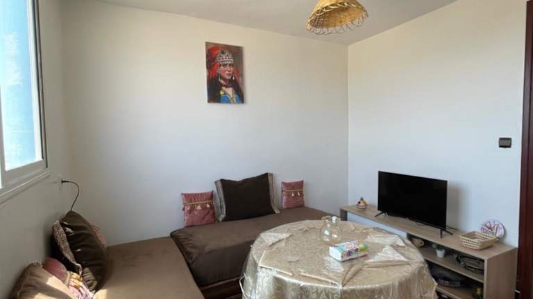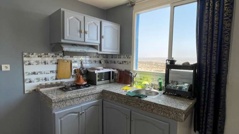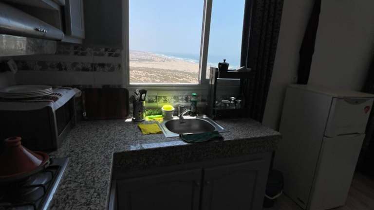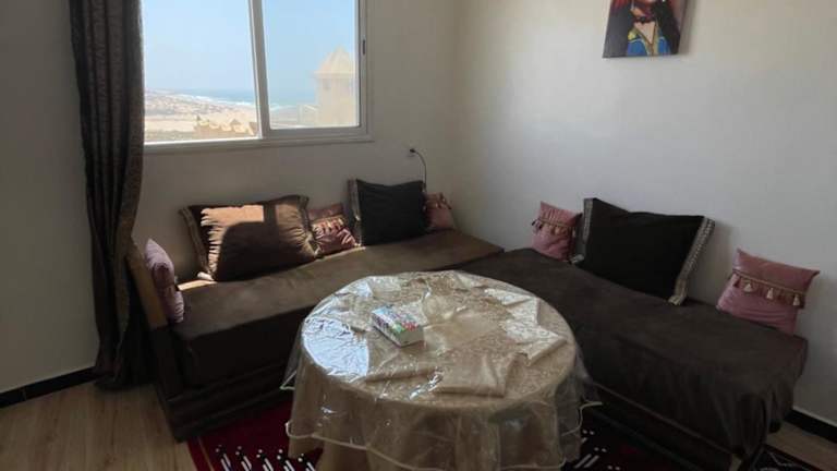 Die Unterkunft Appartement lumineux avec vue mer à Sidi Rbat Entre nature et océan bietet eine helle Ferienwohnung mit Klimaanlage, die aus zwei Schlafzimmern, einem Wohnzimmer, einer voll ausgestatteten Küche und einem Badezimmer besteht. Grillmöglichkeiten sind vorhanden.