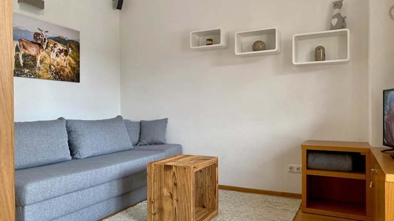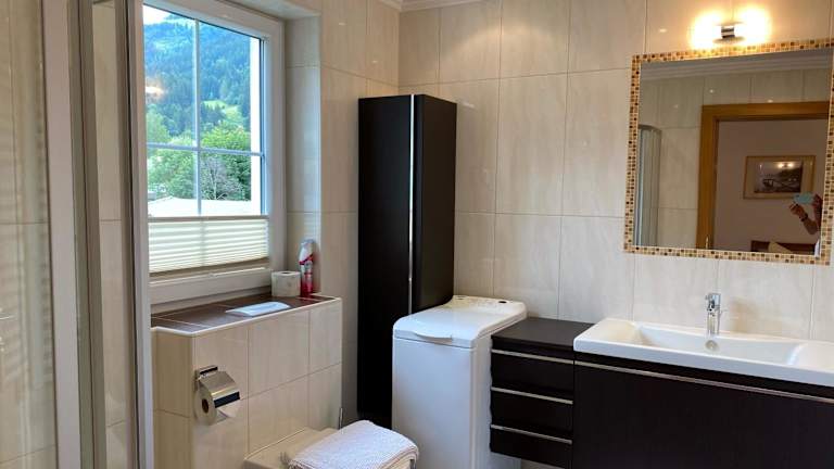 Die Ferienwohnung verfügt über ein Schlafzimmer, ein Wohnzimmer mit Flachbild-TV, eine gut ausgestattete Küche mit Kühlschrank und Geschirrspüler sowie ein Badezimmer mit Dusche. Handtücher und Bettwäsche werden bereitgestellt. Zudem gibt es eine Terrasse mit Bergblick.