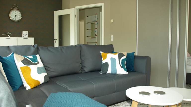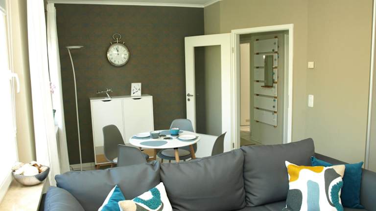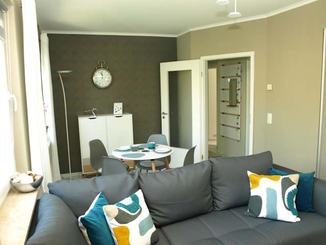 Die Ferienwohnung verfügt über ein Schlafzimmer, ein Wohnzimmer sowie eine voll ausgestattete Küche. Zu den Annehmlichkeiten gehören ein Kühlschrank und eine Kaffeemaschine. Das Badezimmer ist mit einer Badewanne oder Dusche und einem Haartrockner ausgestattet. Handtücher und Bettwäsche werden bereitgestellt.