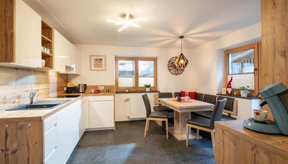 Die Unterkunft verfügt über eine voll ausgestattete Küche mit Kühlschrank und Geschirrspüler, die Selbstversorgung ermöglicht.