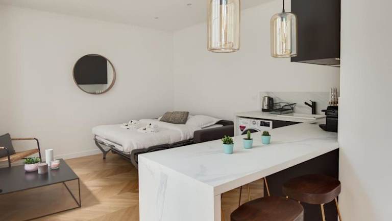 Das Appartement Moderne au coeur du 7ème befindet sich im Zentrum von Paris, nur 700 m vom Musée Rodin und 1,1 km vom Musée d'Orsay entfernt. Die Lage ermöglicht einen einfachen Zugang zu Sehenswürdigkeiten wie dem Eiffelturm (2,5 km) sowie der Sainte-Chapelle (3,5 km). In der Nähe liegen außerdem der Tuileries-Park und der Jardin du Luxembourg.