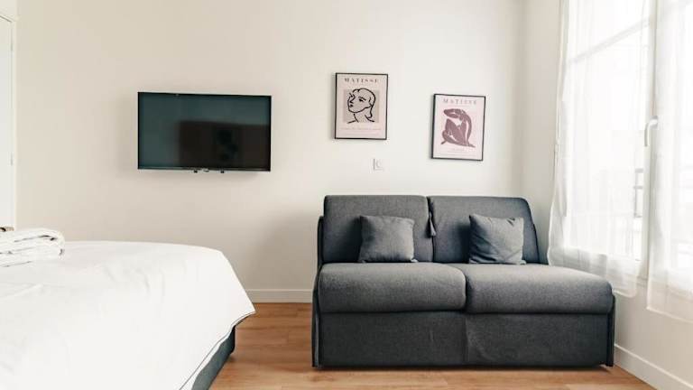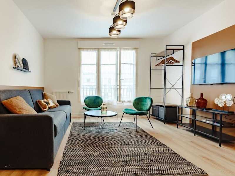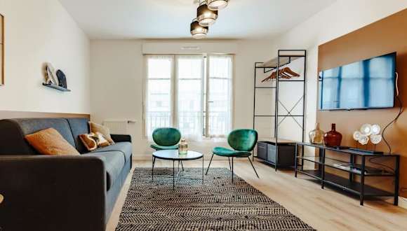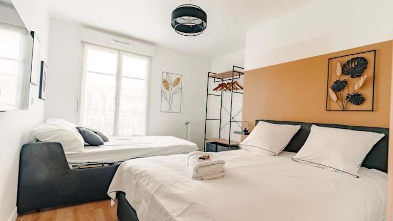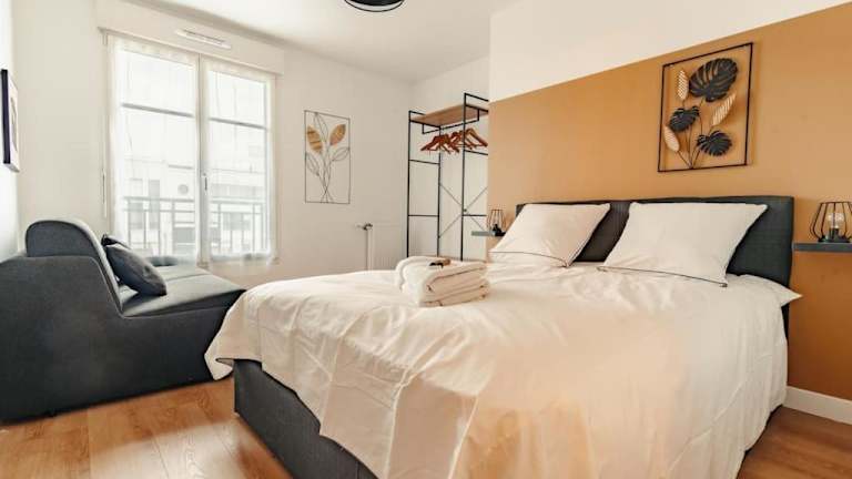 Die Ferienwohnung Appartement moderne - Disneyland & Val d'Europe bietet eine moderne und komfortable Unterkunft. Sie beinhaltet einen Wohnraum mit einem Flachbild-TV und eine voll ausgestattete Küche, die den Gästen die Zubereitung eigener Mahlzeiten ermöglicht. Die Bereitstellung von Handtüchern und Bettwäsche ist im Service enthalten.