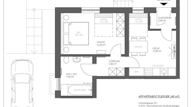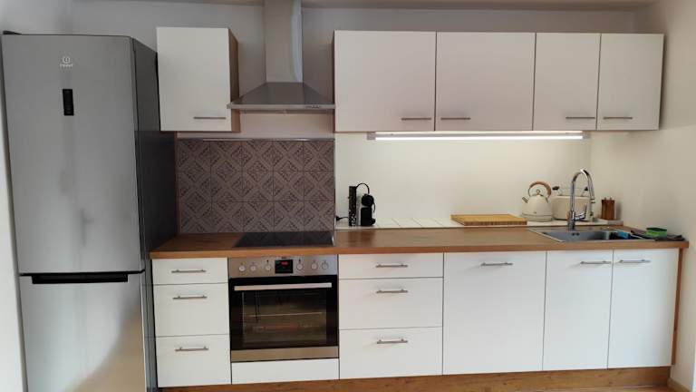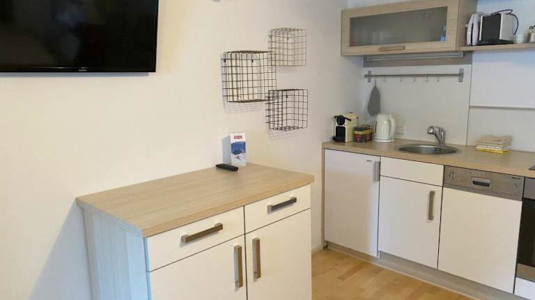 Das Appartement umfasst ein Schlafzimmer und ist mit einem Flachbild-TV mit Kabelkanälen sowie einer gut ausgestatteten Küchenzeile ausgestattet. Die Küchenzeile beinhaltet einen Kühlschrank und einen Geschirrspüler. Des Weiteren steht ein Badezimmer mit einer Badewanne zur Verfügung. Handtücher und Bettwäsche werden bereitgestellt.