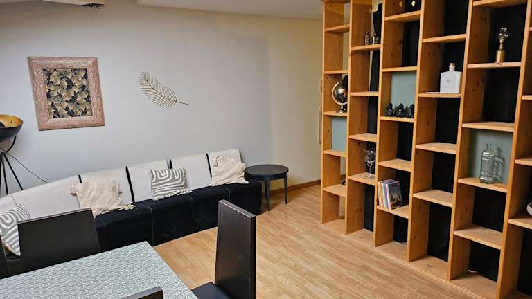 Die Ferienwohnung verfügt über ein Schlafzimmer und ein Wohnzimmer. Die Ausstattung umfasst einen Flachbild-TV sowie eine voll ausgestattete Küche, die den Gästen die Möglichkeit bietet, eigenständig zu kochen.