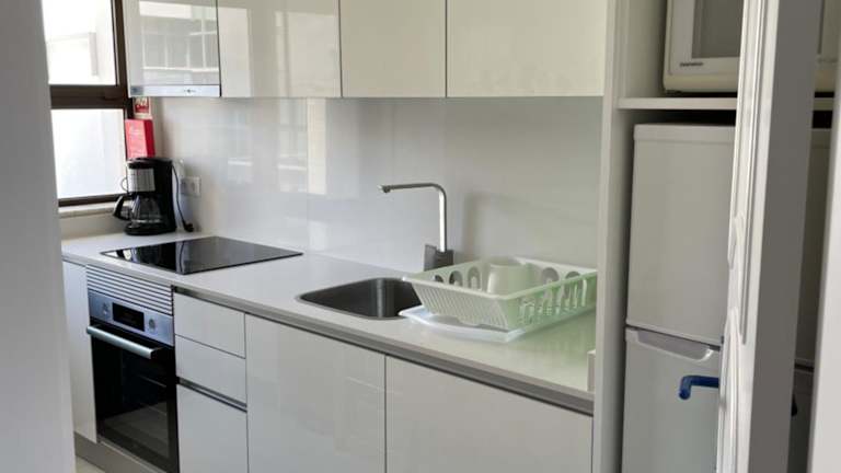 Die Ferienwohnung ist mit einer voll ausgestatteten Küche mit Kühlschrank und Kaffeemaschine ausgestattet, sodass Selbstverpflegung möglich ist.
