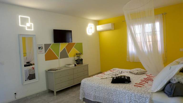 Die Ferienwohnung verfügt über ein Schlafzimmer, ein Badezimmer mit Dusche, einen Fernseher mit Satellitenkanälen sowie eine gut ausgestattete Küche mit Kühlschrank und Ofen. Handtücher und Bettwäsche werden bereitgestellt.