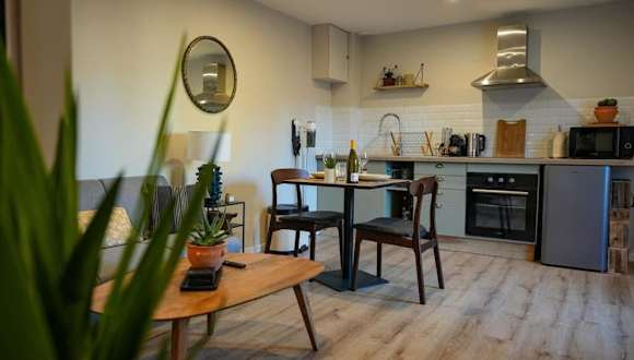 Das Appartement verfügt über ein Schlafzimmer, eine Küche mit Kühlschrank und Ofen, ein Wohnzimmer mit Flachbild-TV und Sitzbereich sowie ein Badezimmer mit Dusche. Handtücher und Bettwäsche können gegen Aufpreis bereitgestellt werden. WLAN ist in der gesamten Unterkunft kostenlos verfügbar.