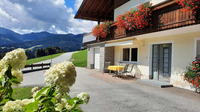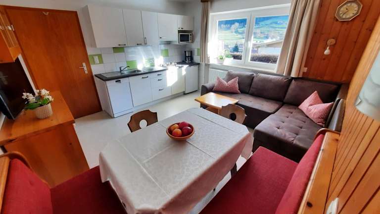 Die Ferienwohnung besteht aus 2 Schlafzimmern, einem Badezimmer sowie einer voll ausgestatteten Küchenzeile und einem Essbereich. Zur Ausstattung gehören Bettwäsche, Handtücher und eine Terrasse mit Bergblick. Die Unterkunft bietet weiterhin WLAN in allen Bereichen, Gartenmöbel und ist Nichtraucherzone.
