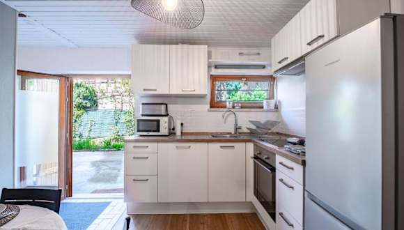 Das Apartment im Schlofa verfügt über ein Schlafzimmer und ein Wohnzimmer, in dem Sie sich entspannen können. Die voll ausgestattete Küche bietet alles, was Sie für die Zubereitung Ihrer Mahlzeiten benötigen, einschließlich eines Kühlschranks und einer Kaffeemaschine. Das Apartment verfügt auch über ein Badezimmer mit einer Dusche und einem Haartrockner. Handtücher und Bettwäsche werden gestellt, um Ihnen einen angenehmen Aufenthalt zu ermöglichen.
