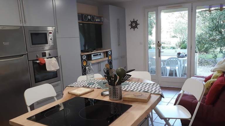 Das Appartement Seignosse Océan befindet sich in Seignosse, nur wenige Gehminuten von den Stränden Penon, Bourdaines und Casernes entfernt. Die Lage ist ideal für Strandliebhaber, die die Sonne und das Meer genießen möchten. In der Umgebung gibt es auch Möglichkeiten zum Wandern und Spazierengehen. Der Bahnhof Biarritz La Négresse ist 41 km entfernt und der Bahnhof Dax erreicht man nach 45 km. Der nächstgelegene Flughafen, der Flughafen Biarritz, liegt 37 km entfernt.