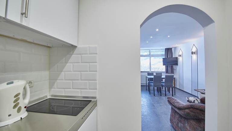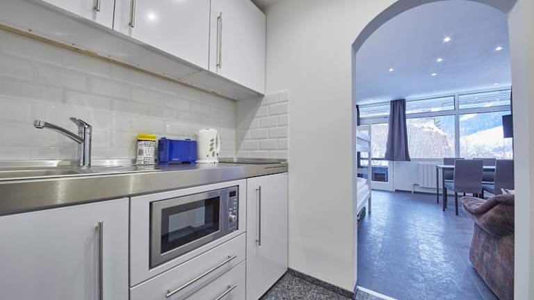 Die Ferienwohnung verfügt über ein Schlafzimmer und eine Küchenzeile, die mit einem Kühlschrank ausgestattet ist. Sitzgelegenheiten sind ebenfalls vorhanden. Zur Unterhaltung steht ein Satelliten-Flachbild-TV zur Verfügung. Handtücher und Bettwäsche werden bereitgestellt.