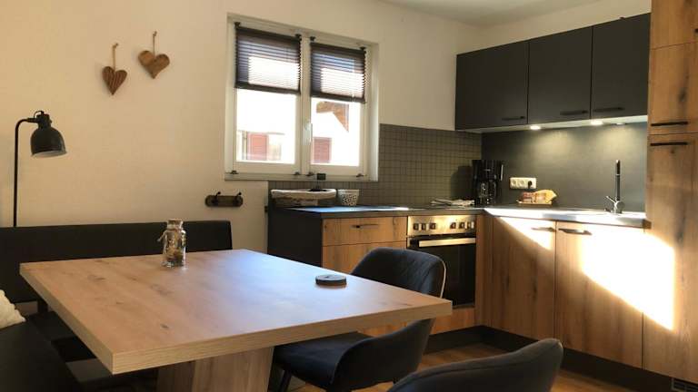 Die Ferienwohnung verfügt über ein Schlafzimmer, ein Wohnzimmer, einen Flachbild-TV sowie eine gut ausgestattete Küche mit Kühlschrank und Ofen. Das Badezimmer ist mit einer Dusche ausgestattet. Handtücher und Bettwäsche werden bereitgestellt. Zudem ist ein Balkon mit Bergblick vorhanden.