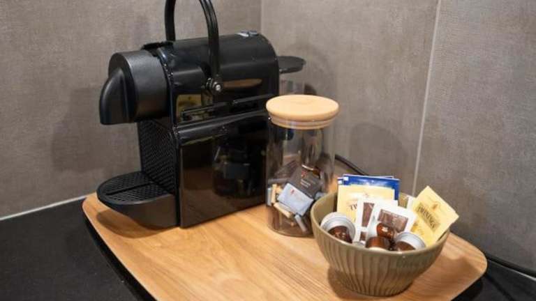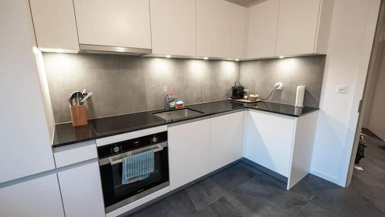 Die Ferienwohnung enthält eine voll ausgestattete Küche, die mit einem Geschirrspüler, einem Ofen, einer Herdplatte sowie einer Minibar ausgestattet ist. Es sind keine spezifischen Verpflegungsmöglichkeiten vorhanden.