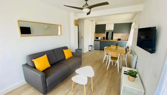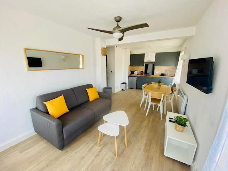 Das Hotel Appartement T2 4 Pers - Bord de Mer in Le Grau-du-Roi bietet Ihnen eine ideale Unterkunft mit seitlichem Meerblick, nur einen kurzen Spaziergang vom Strand und dem Stadtzentrum entfernt. Das Apartment verfügt über eine voll ausgestattete Küche, einen gemütlichen Wohnbereich und kostenfreies WLAN. Ein separates Schlafzimmer mit einem Doppelbett und einem Schlafsofa sorgt für eine angenehme Nachtruhe. Handtücher und Bettwäsche können gegen Aufpreis zur Verfügung gestellt werden.