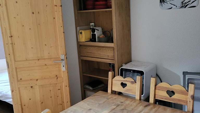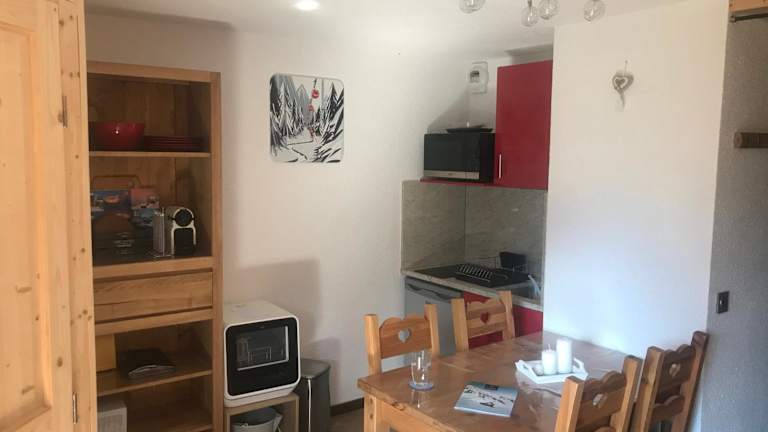 Das Apartment T2 col de Merdassier au pied des pistes bietet ein gemütliches und gut ausgestattetes Zimmer. Es verfügt über ein Schlafzimmer mit einem komfortablen Bett, ein Wohnzimmer mit einem Flachbild-TV und einen Balkon, von dem aus Sie den Blick auf die Umgebung genießen können. Die voll ausgestattete Küche ermöglicht es Ihnen, Ihre eigenen Mahlzeiten zuzubereiten, und das Badezimmer ist mit einem Haartrockner ausgestattet. Kostenloses WLAN ist ebenfalls vorhanden.