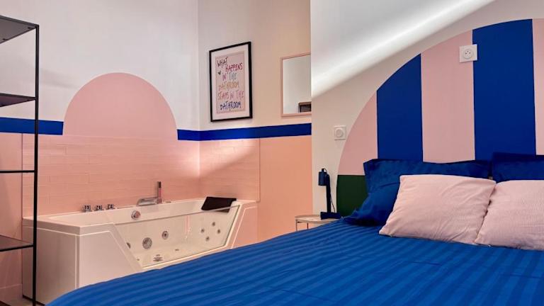 Das Appartement Thème Années 60' bietet Übernachtungsmöglichkeiten in einem ansprechend gestalteten Ambiente und verfügt über einen Whirlpool. Es ist eine privat geführte Unterkunft mit einem Mindestalter von 18 Jahren für den Check-in.