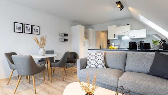 Das Appartement 'Tina' im Haus 'Strandjutter' APPARTO Grömitz offeriert Übernachtungsmöglichkeiten in einer Ferienwohnung mit Balkon und kostenlosem WLAN. Die Unterkunft verfügt über zwei Schlafzimmer und eine Küchenzeile, die mit Kühlschrank und Geschirrspüler ausgestattet ist. Pro Aufenthalt kann eine Anzahlung per Überweisung verlangt werden, und die Mindestanforderung für den Check-in ist 18 Jahre.