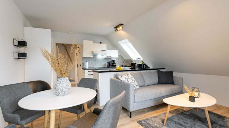 Das Appartement ist mit zwei Schlafzimmern und einer Küchenzeile ausgestattet. Die Küchenzeile bietet einen Kühlschrank sowie einen Geschirrspüler. Zudem gibt es ein Badezimmer mit Dusche. Die gesamte Unterkunft ist als Nichtraucherunterkunft klassifiziert.