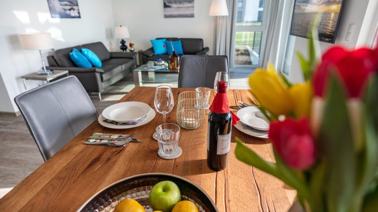 Was könnte schöner sein als ein Urlaub auf Usedom im Ferienhaus am Strand? Wir haben etwas viel Besseres für Sie! Großzügige Ferienwohnungen, ausreichend Platz für die ganze Familie, lichtdurchflutete Zimmer, hochwertige Ausstattung, idyllische Ruhe und ein herrlicher Blick über das Stettiner Haff – da fühlt man sich doch gleich wie zu Hause. Und der Ostseestrand ist in kürzester Zeit erreichbar. Bei uns in der Oase am Haff finden Sie nicht nur ein Ferienhaus am Stettiner Haff, sondern gleich sieben, ausgestattet mit allen Annehmlichkeiten, abwechslungsreichem Freizeitangebot und komfortablen Wellnesseinrichtungen.